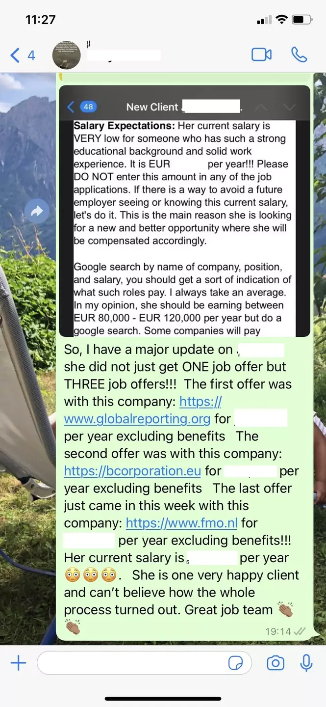 I started working with Caroline after relocating from Kenya to the Netherlands. She was very instrumental in guiding me through specifics of the job market in Europe. She helped me align my career aspirations with requirements of the corporate sector in this part of the globe. Caroline also guided me through the job search process by recommending opportunities which matched my skills set and work experience. I attended several job interviews while under her mentorship and got shortlisted by several international organizations. I successfully joined a global company within 4 months of our working together. I would highly recommend Caroline to anyone going through a career transition or who is in the process of settling down in a new country.